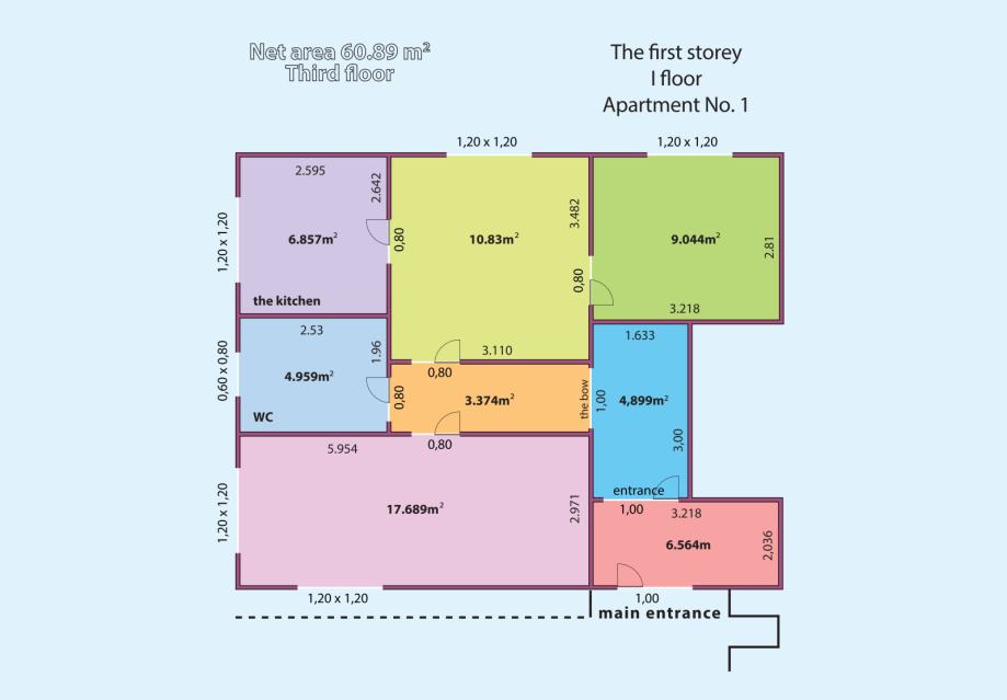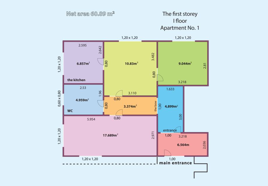 1st floor: Apartment 1 - 60.89m2
