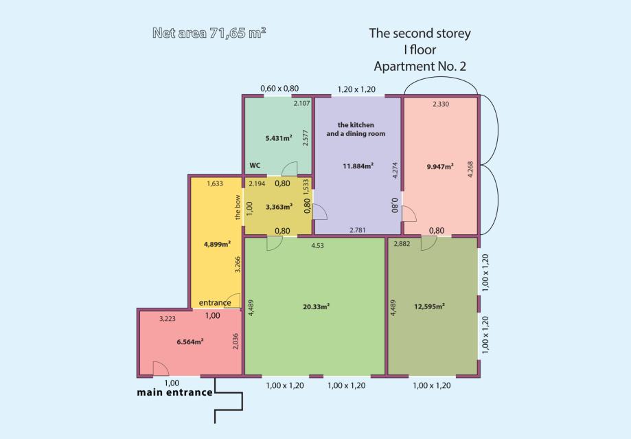 1st floor: Apartment 2 - 71.65m2