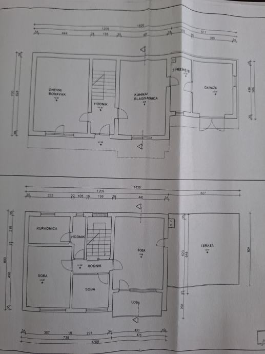 U prizemlju kuće se nalazi dnevni boravak, blagavaona i kuhinja koja je spojena sa ostavom, i izlazom u kotlovnicu i garažu.