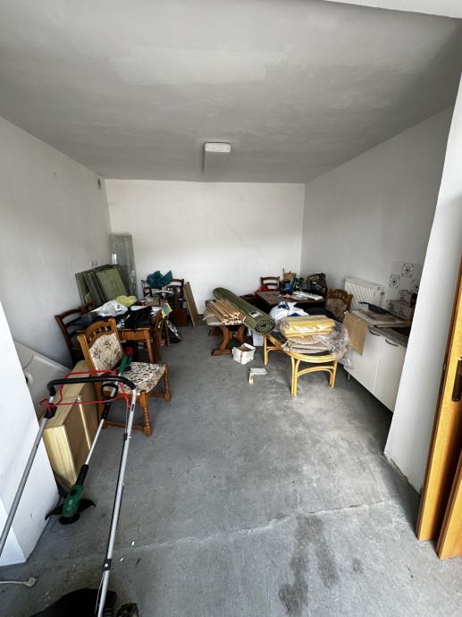 Opis nekretnine; prizemlje do ulične strane - poslovni prostor sa sanitarnim čvorom 35,00 m2, garaža , sa desne bočne strane ulaz u stambeni dio objekta , kupona, kuhinja, dn. boravak izlaz na veliku terasu , spavaća soba .