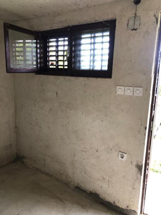 Kuća ima dvije prostorije i WC. U dvorištu je cisterna s kišnicom, a gradski vodovod je također na parceli (vlastiti priključak).