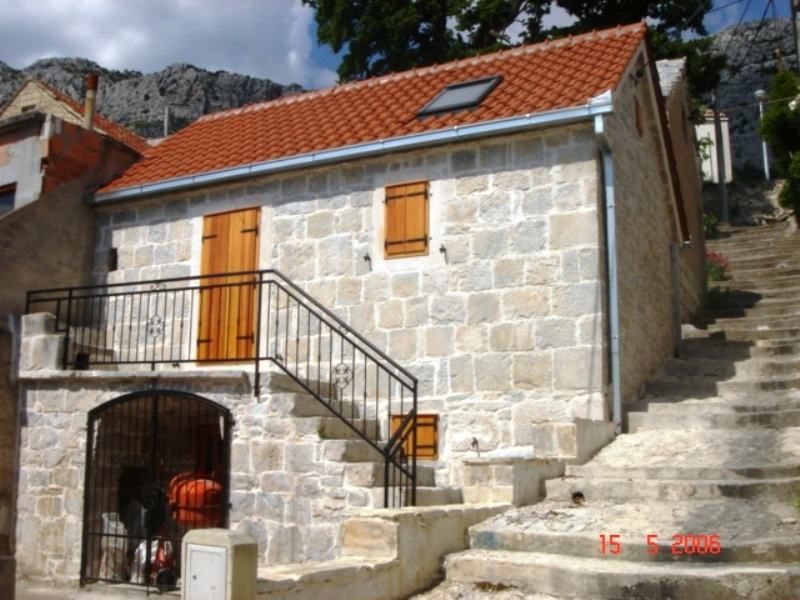 Luksuzno renovirana kamena kuća površine 70 m2, na dvije etaže, smještena u prekrasnom starom selu u Brelima, s donje strane magistrale i cca 1 km od najljepših šljunčanih plaža.