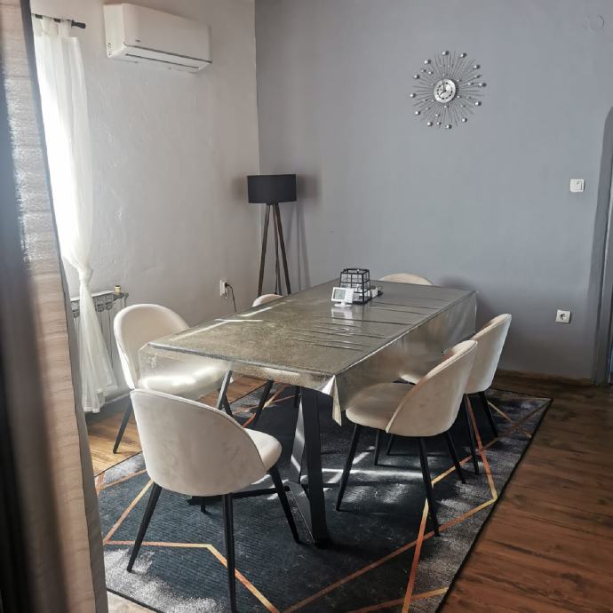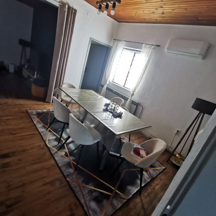 Centralno grijanje na drva i na plin, klima uređaj, garaza za 2 auta, dvoriste kompletno ograđeno.