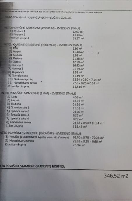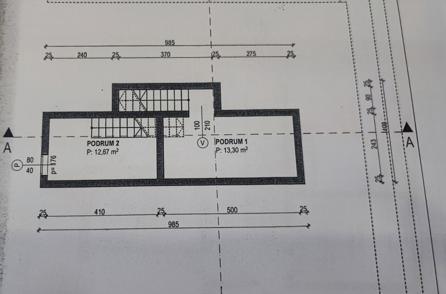 Kuća ima dva podruma ukupne površine 25,97m2.