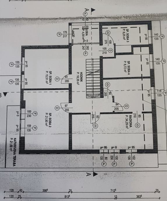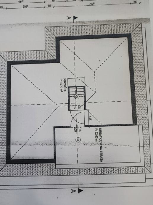 Tavanski prostor je površine 70,28 m2 iz kojeg se izlazi na krovnu terasu površine 5,66 m2.