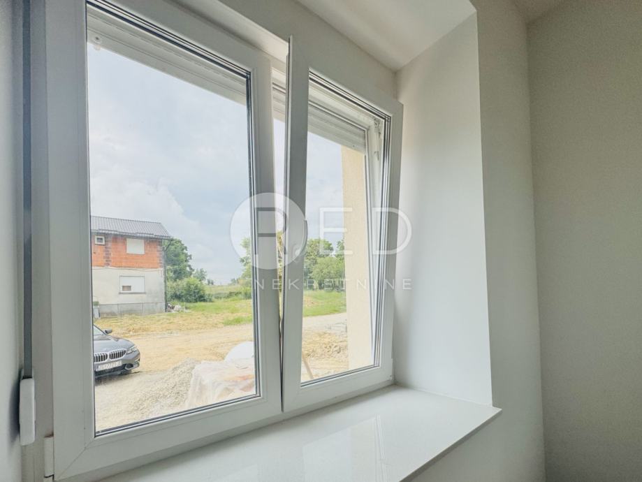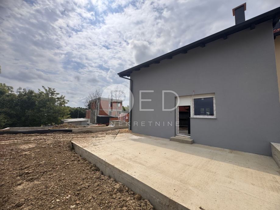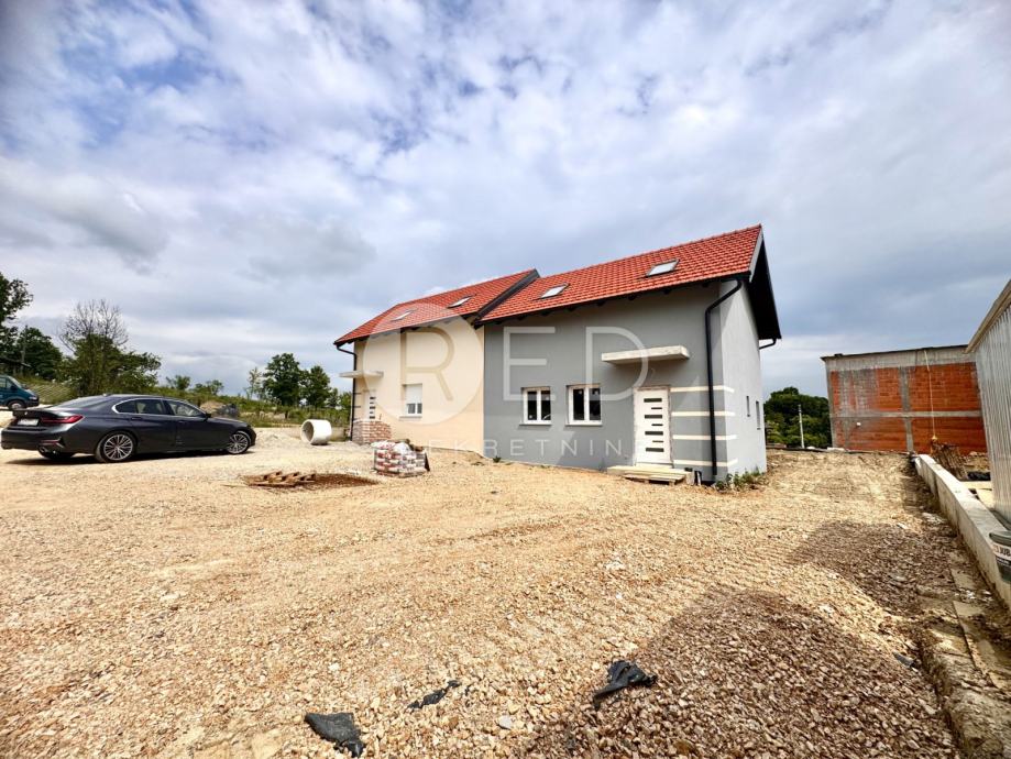 Na prodaju je dvojna kuća ukupne stambene površine 120 m2. Kuća je trenutačno u visokom roh bau, a završetak svih radova planiran je za srpanj 2025.