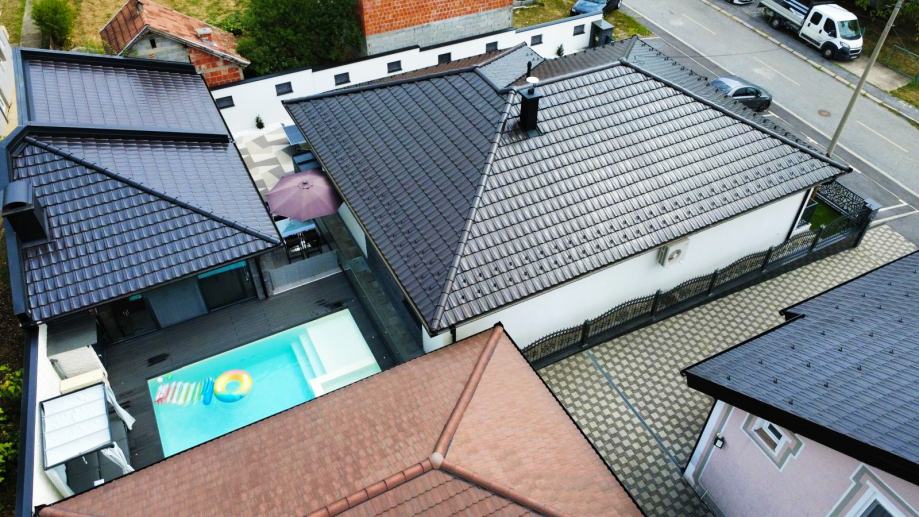 Prodaje se luksuzna, samostojeća obiteljska kuća stambene površine 174 m2 , izgrađena 2020. godine, s grijanim bazenom i uređenim dvorištem.