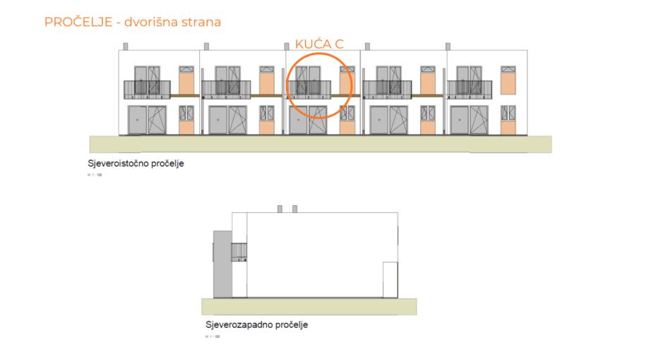 Svaka kuća ima privatni vrt, 2 natkrivena parkirna mjesta te pristup zajedničkom vrtu s dječjim igralištem.