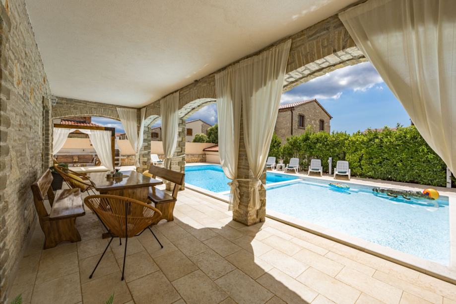 Villa Pietro je atraktivna ,udobna i šarmantna istarska vila sa velikim bazenom 70 m2(dječiji bazen +odrasli bazen), šta ističe ovu nekretninu ispred drugih, koja je idealna investicija za turistički najam .