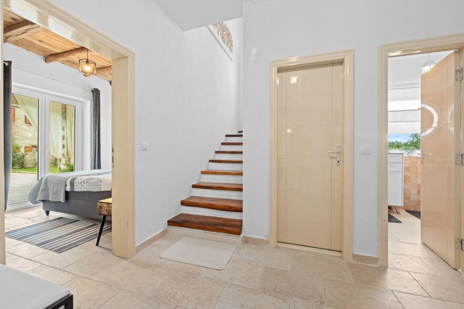 Gornji kat se sastoji od tri spavaće sobe , dva kupatila i dvije velike natkrivene terase.