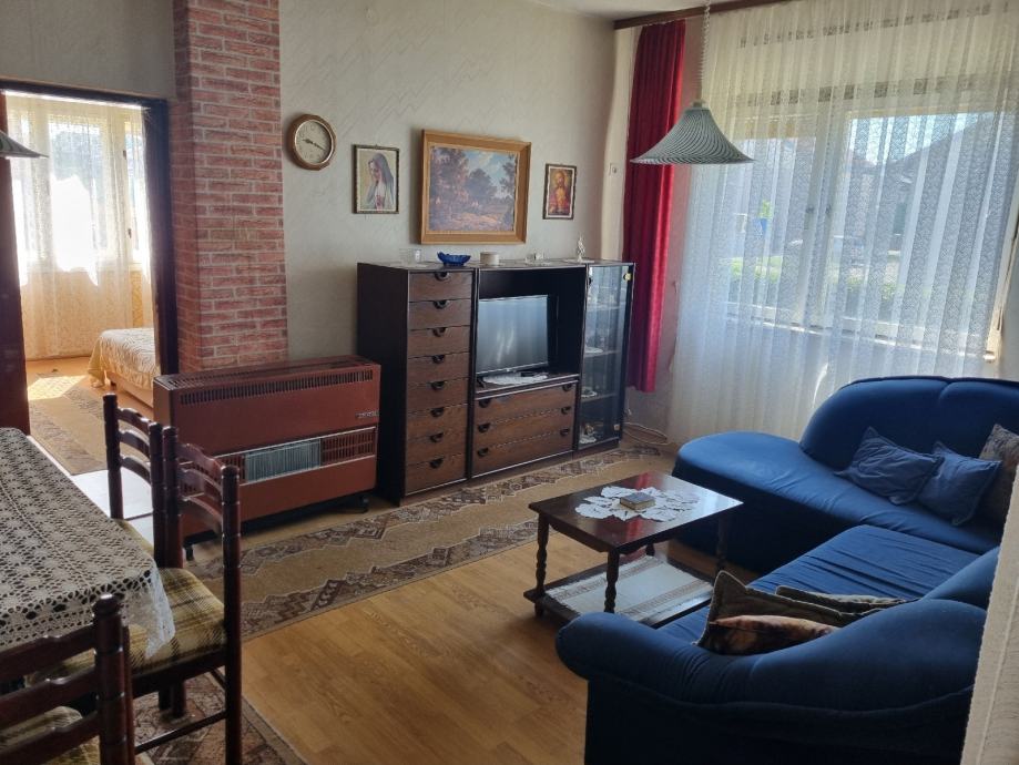 Prodaje se kuća u blizini centra na odličnoj lokaciji ,kompletno namještena a sastoji se od 3 sobe, kuhinje, blagovaonice,kupaonice,smočnice,garaže i podruma.