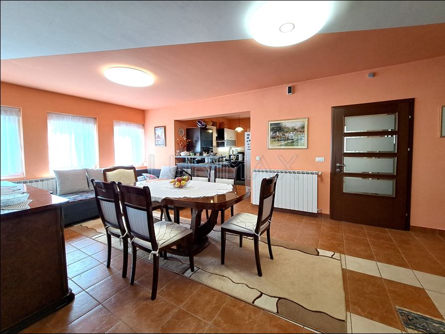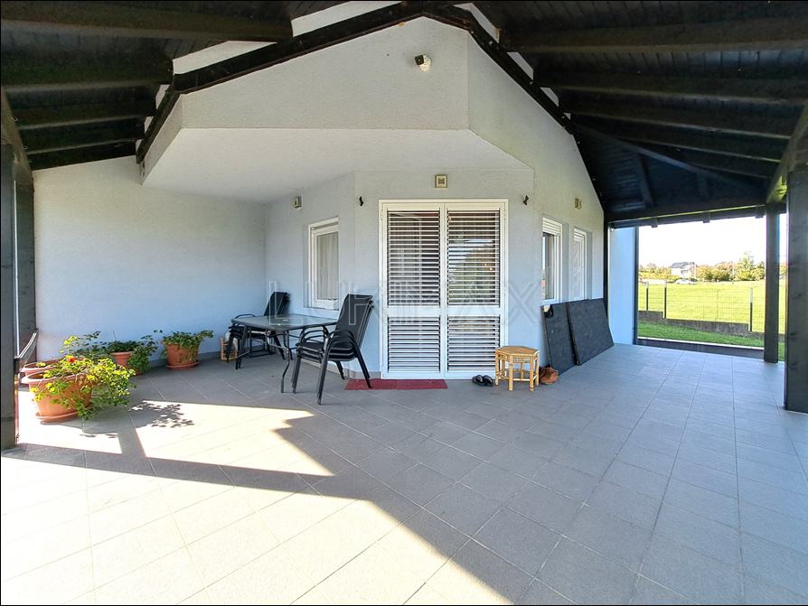 - open space prostor u kojem je dnevni boravak, kuhinja i blagovaonica iz kojih je izlaz na prostranu natkrivenu terasu sa koje se pruža pogled na grad Vrbovec