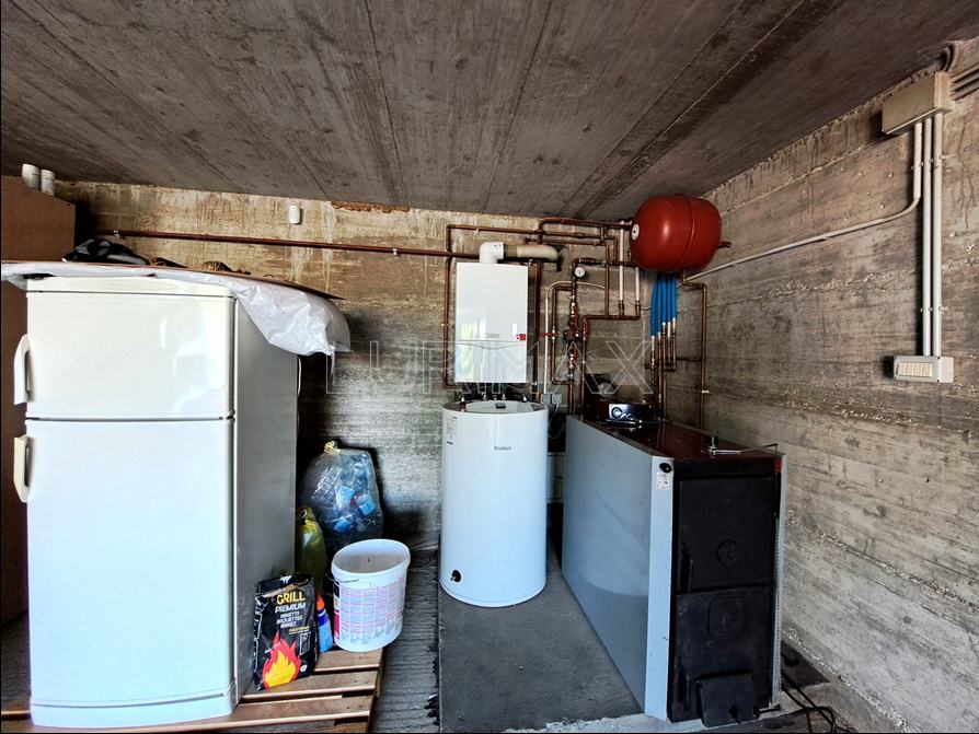 U podrumu kuće se nalazi garaža sa dva parkirna mjesta koja je zatvorena vratima na električni pogon, kotlovnica i spremište.