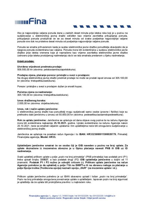 Druga elektronička javna dražba završava 17.11.2021.g. u 12:59:59 sati.