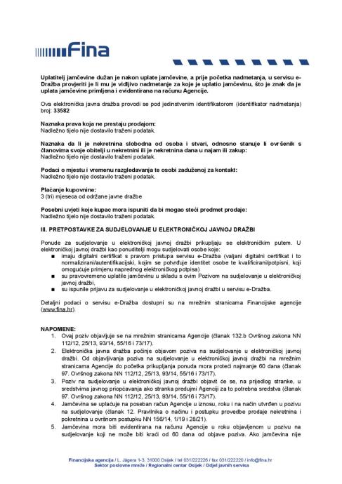Predmet se prodaje na drugoj elektroničkoj javnoj dražbi.