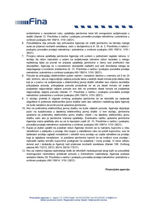 Ponude u drugoj elektroničkoj javnoj dražbi prikupljaju se elektroničkim putem od 03.11.2021.g. s početkom u 13:00:00 sati do 17.11.2021.g. u 12:59:59 sati.