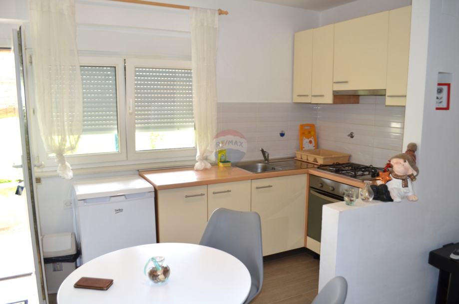 U prizemlju se nalazi stan površine 30 m2, koji je renoviran i namješten te se koristi za najam, te zatvorena veranda.