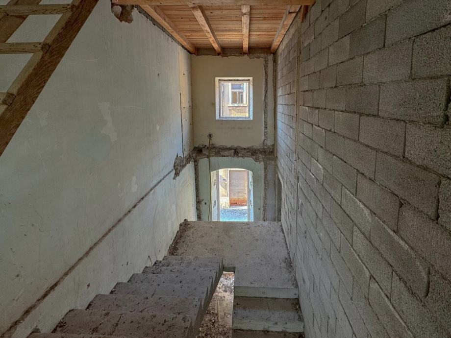Prodaje se djelomično renovirana kuća u nizu smještena u samom centru Drniša, savršena za one koji traže nekretninu s potencijalom. Kuća se proteže na tri etaže, s ukupnom korisnom površinom od 235 m2. Iako je djelomično renovirana, s novim krovištem, međukatnim drvenim konstrukcijama, betonskim stubištem i obnovljenom vanjskom fasadom, nudi brojne mogućnosti za daljnje uređenje prema željama budućeg vlasnika.