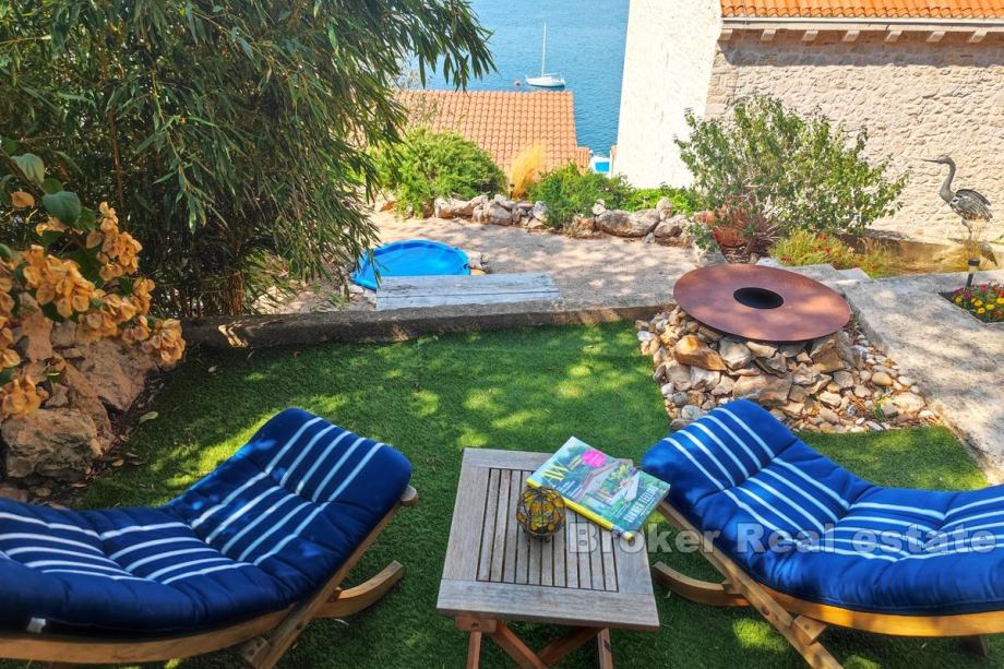 Kuća je smještena na atraktivnoj lokaciji 70m od Rive, na uzvisini s ograđenim dvorištem iz kojeg se pruža otvoren pogled na more.
