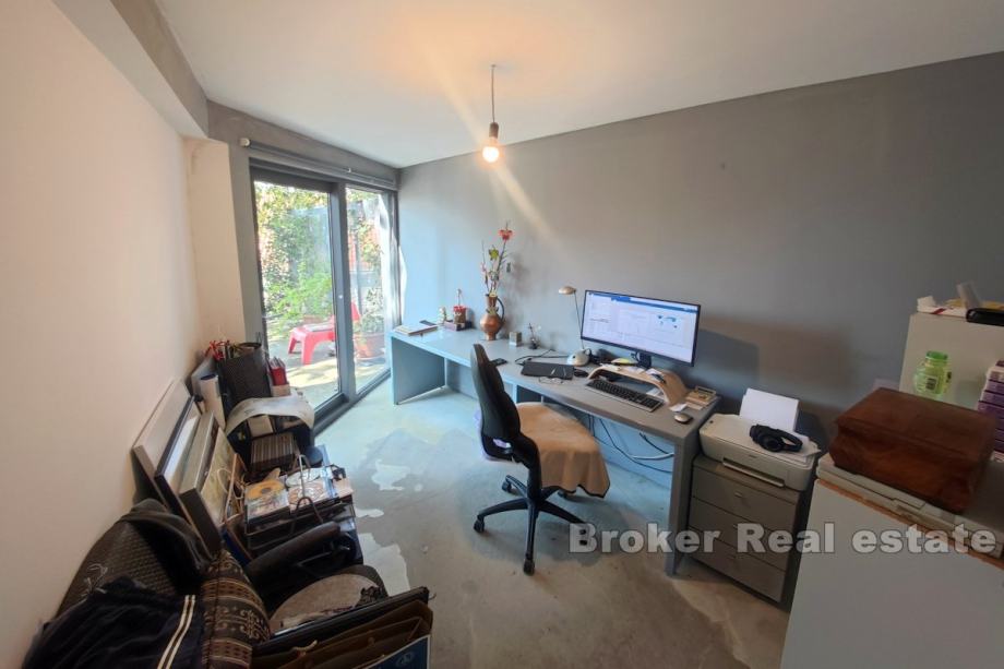 – U prizemlju se nalazi hodnik, kupaonica, ostava, radna soba i dnevni boravak s kuhinjom i blagovaonicom koji ima direktnu komunikaciju s vanjskom terasom i cijelim dvorištem