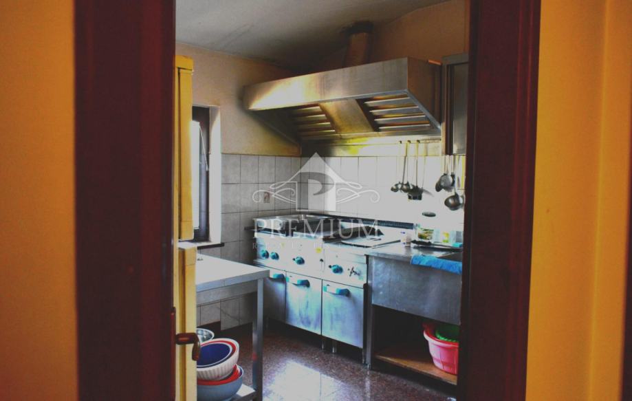 Prostor na katu od cca 250 m2 najlakše je odmah staviti u funkciju jer ima sav potreban inventar za pizzeriju ili restoran (opremljena kuhinja, stolovi, stolice, šank). Na katu je i terasa.