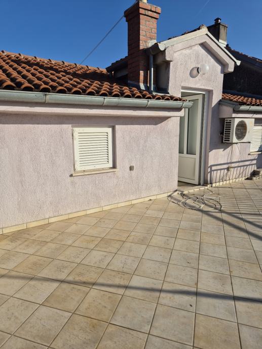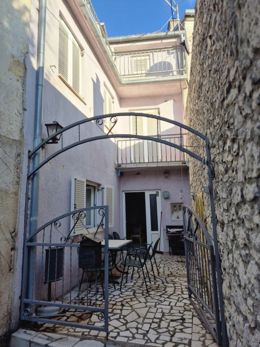 Kuca u nizu na tri etaze .Mogucnost odvajanja tri stana .Sastoji se od dvorista 15m2 kuhinje i blagavaone dnevnog boravka kupaone i ostave u prizemlju .Na prvom katu su dvije sobe od koja je jedna sa balkonom dnevni boravak i kupaona.Na drugom katu je jedna soba sa blagavaonom i kuhinjom i kupaonom .iIz tog stana se izlazi na terasu od 30m2 sa pogledom na more.Udaljenost svega 100m od centra .Vlasnistvo 1/1 uredna dokumentacija.
