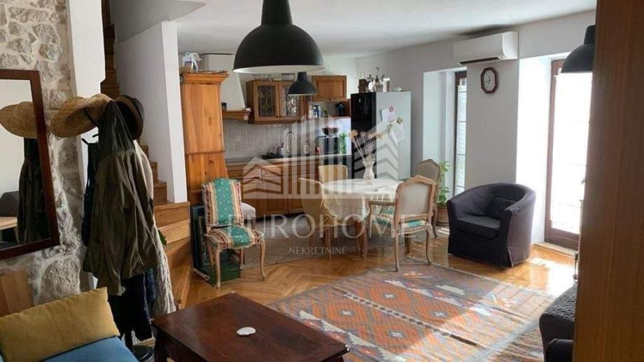 Kuća se može odvojiti na dvije stambene jedinice, etažirano je, ima dva ulaza.