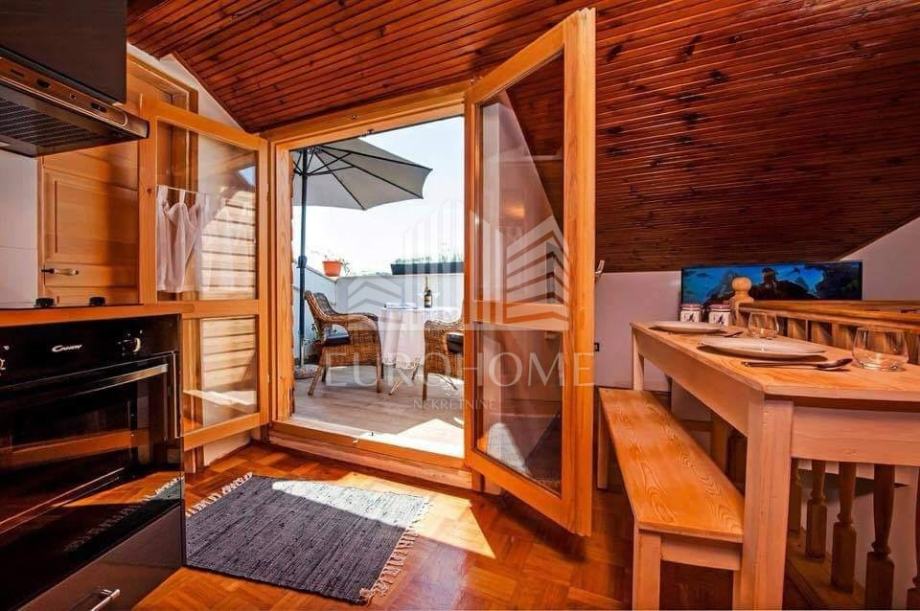 - potkrovlje, kuhinja, spavaća soba i izlaz na dvije terase s pogledom na more i grad.