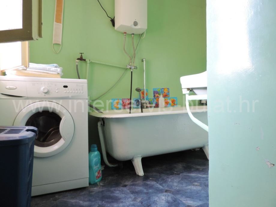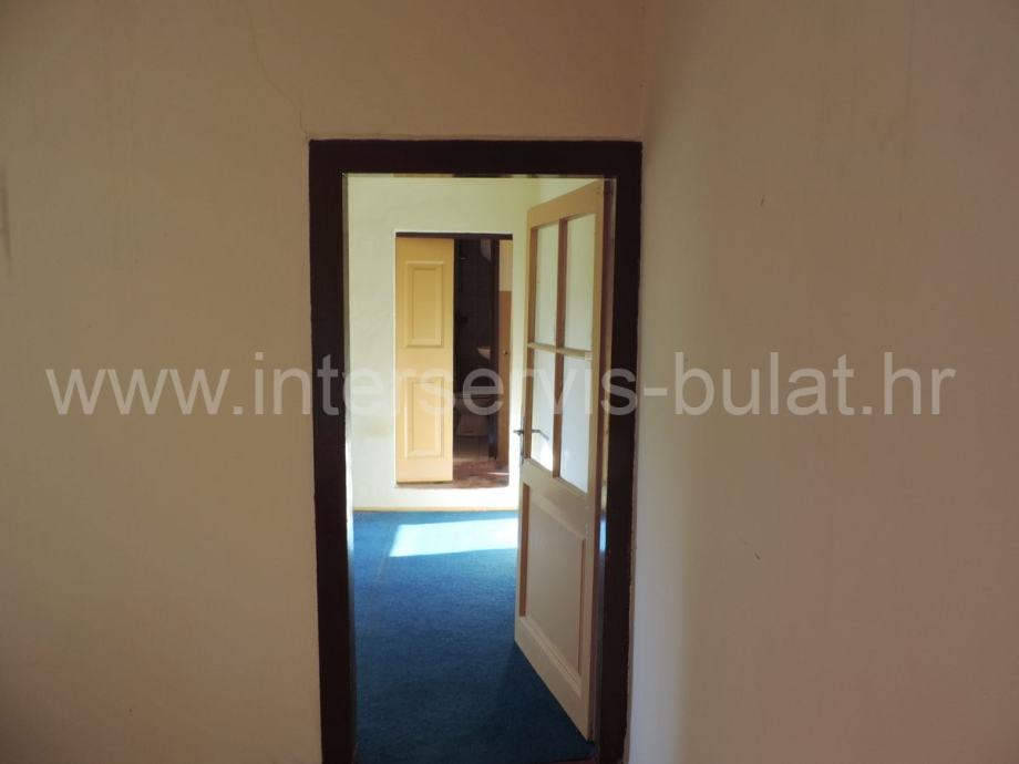 U prizemlju od 46,28m2 (zapadni dio) nalazi se kuhinja s blagovaonicom, dnevna soba, ostava, spavaća soba i ljetna kuhinja od 10,47m2 dok se na katu nalazi manji stan od 33m2 koji se sastoji od kuhinje, blagovaonice, kupaonice i dvije sobe od kojih je jedna prolazna.