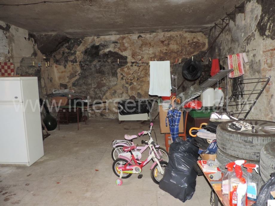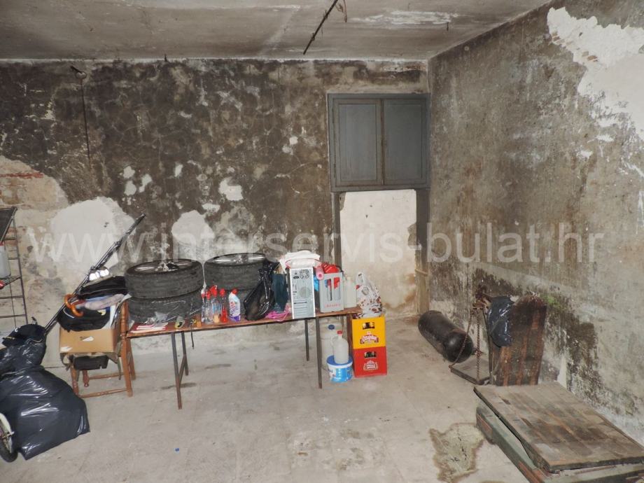 Istočni dio kuće u prizemlju ima konobu od 48m2, sve u jednom dijelu. Na katu se nalazi dvosoban stan od 55m2.