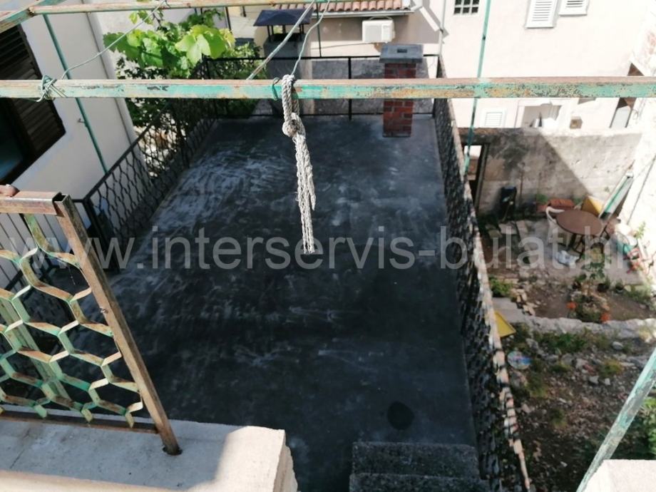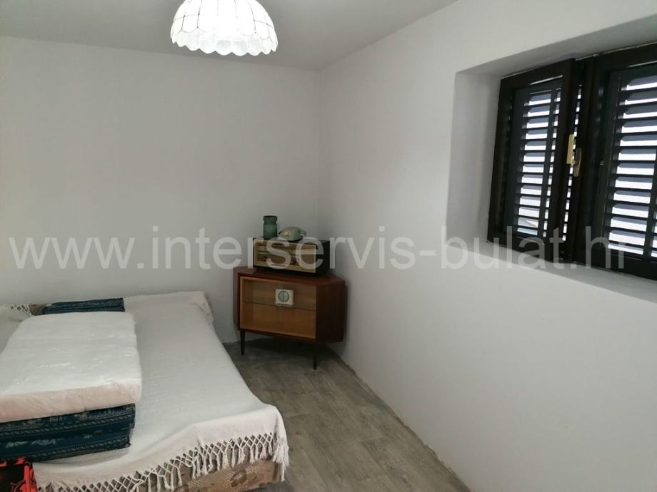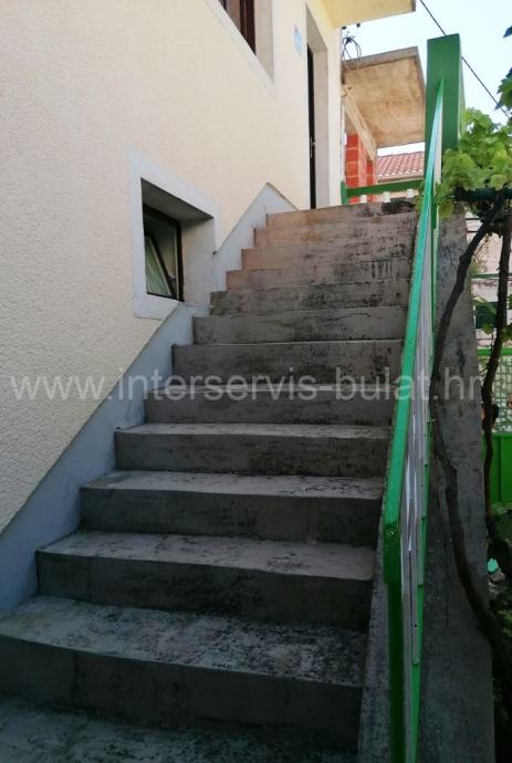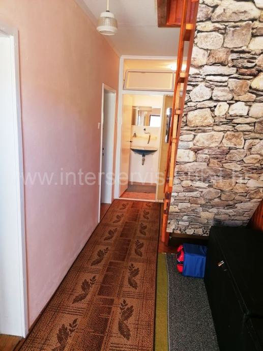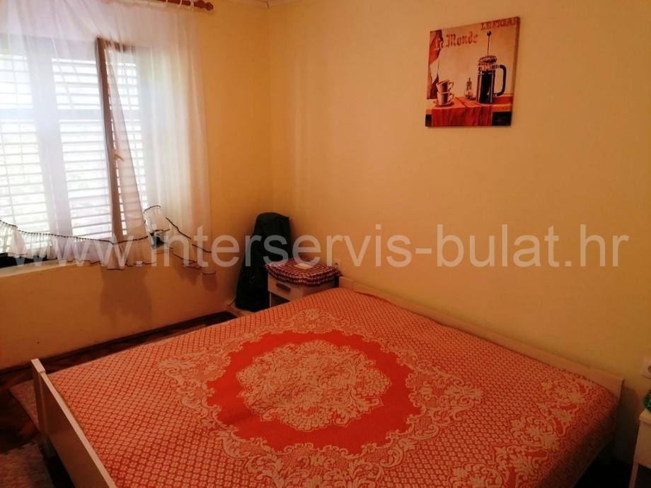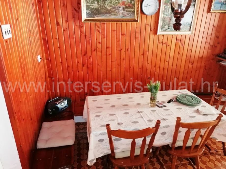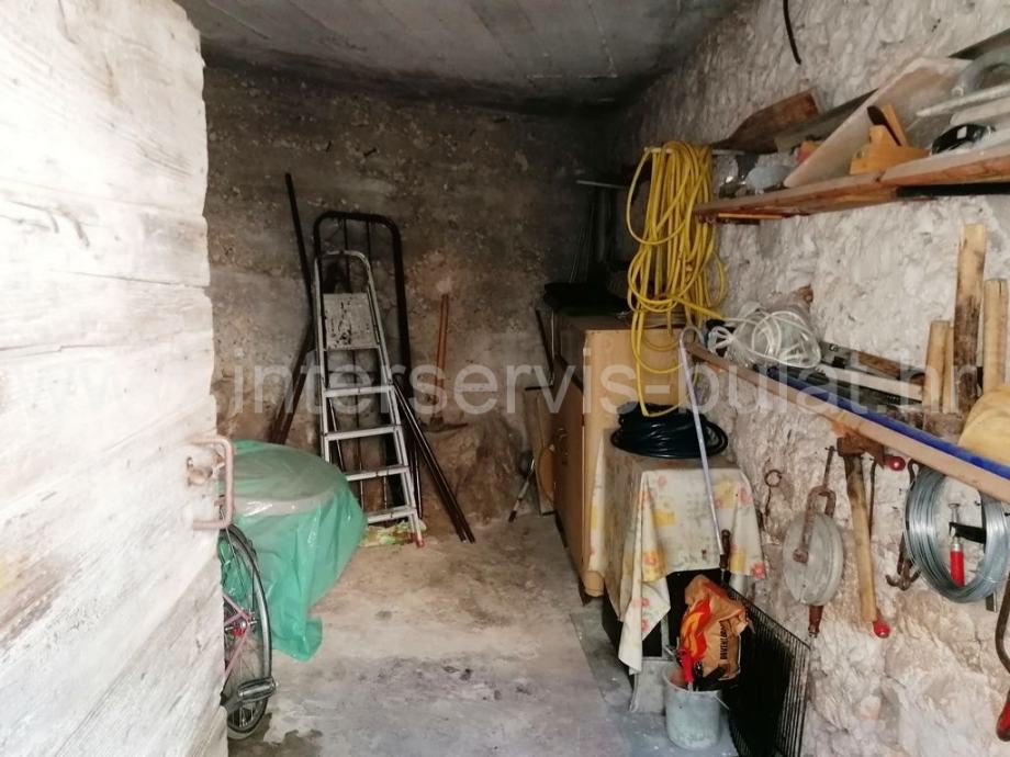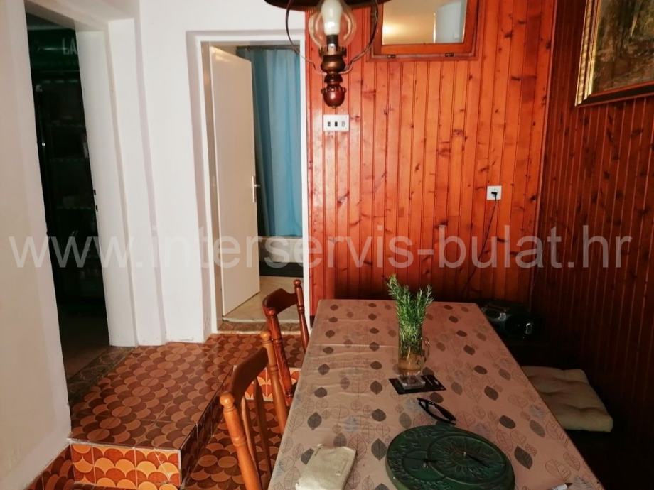 U prizemlju se nalazi kuhinja, blagovaonica, dnevna soba, ostava, kupaonica i terasa. Vanjske stepenice vode do kata gdje se nalaze dvije spavaće sobe, hodnik i WC. Kat raspolaže sa cca 40m2. Unutarnje stepenice vode do potkrovlja gdje je sve u jednom dijelu i koje raspolaže sa cca 40m2. Uz kuću postoji zaseban objekt od 13m2 gdje se nalazi još jedna spavaća soba. Iza kuće je konoba od 12m2.