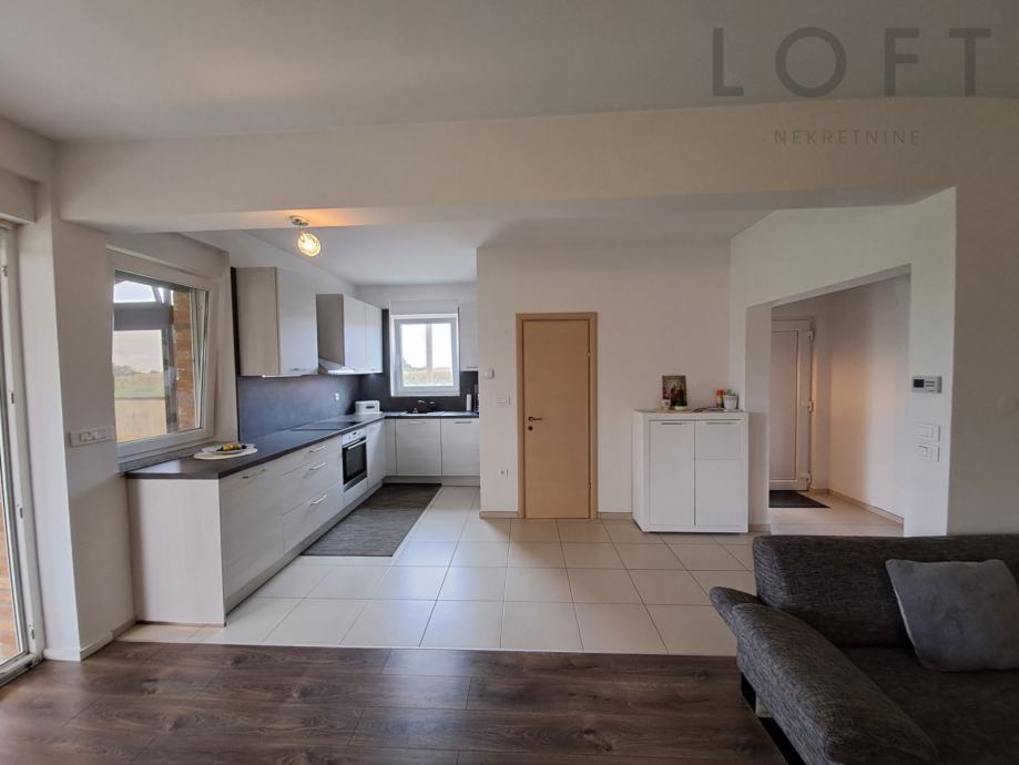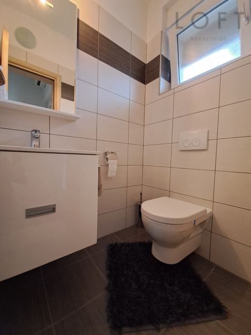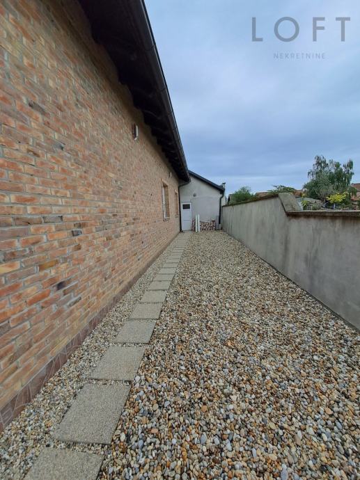 Kuća se sastoji od prostranog dnevnog boravka sa blagovaonicom i kuhinjom (open space), tri spavaće sobe, wc-a, kupaonice, ostave i hodnika. Iz dnevnog boravka izlazi se na prostranu terasu - zimski vrt sa pogledom na dvorište. Potpuno ograđeno dvorište (visina ograde 130 cm) garantira mir i privatnost, a staklene stijene i veliki prozori zaslužni su za veliku količinu sunčeve svijetlosti tijekom cijelog dana.