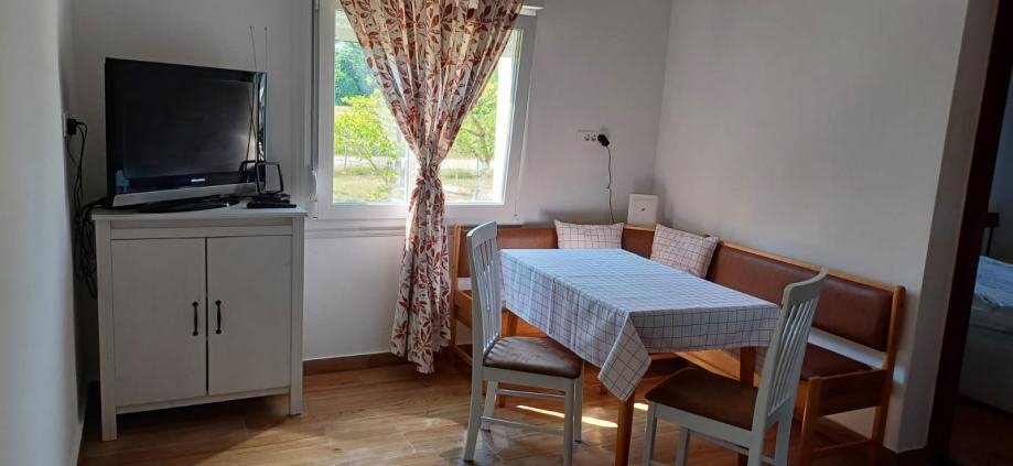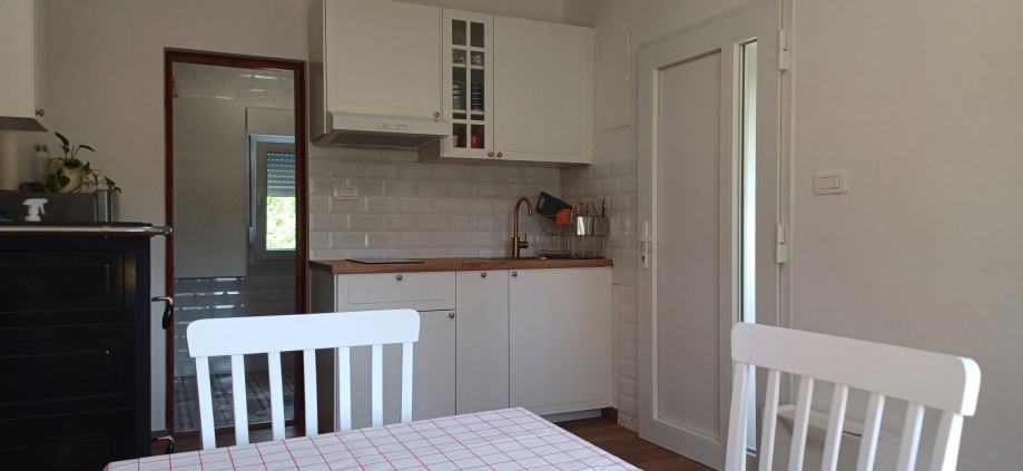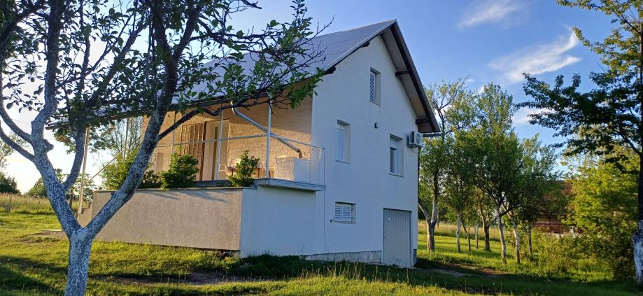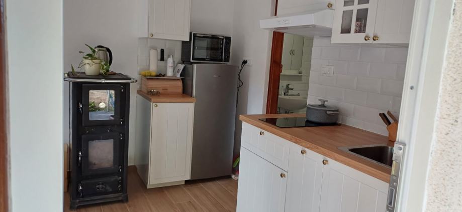 Potpuno renovirana kuća, novi sustav vodovoda i odvodnje, dogrijavanje novim klima uređajima plus peć na drva, nova okna i vrata, kuhinja, kompletne nove pločice, sanitarije i uređenje trijema. Dostupna je od 5.9.2025. Kvadratura: okućnica 2.250 m2 i 50 m2 stambenog prostora (2 spavaće sobe- ležajevi za 4 osobe, dnevni/blagovaonica s kuhinjom te kupaonica), plus 15 m2 natkrivene terase/trijema te 50 m2 podruma s WC-om i pomoćnom kuhinjicom, te zasebno garaža za drva. Kompletno namještena i funkcionalna s posuđem, posteljinom i ručnicima. Voda: dvostruki sustav (i javni vodovod i cisterna s hidroforom). Od aparata u kući su: perilica rublja, brzi Internet (A1 mobilni modem), brza indukcijska ploča, napa, pećnica, TV, frižider