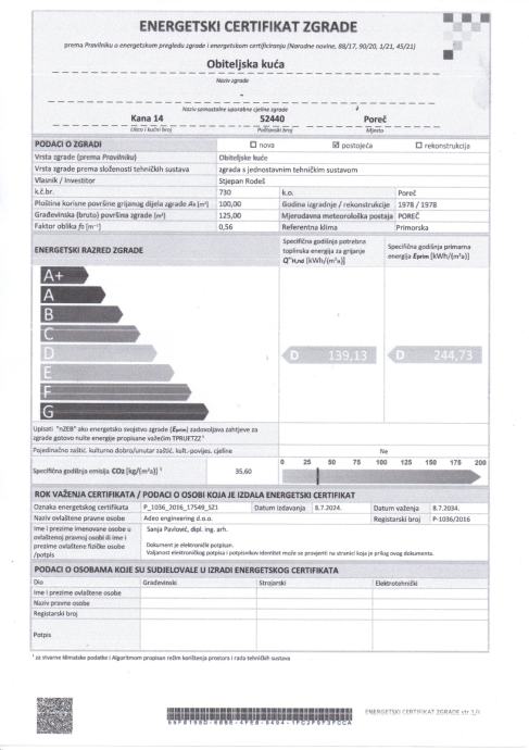 kuća je posljednji puta renovirana 2004. godine, blizu mora - 400 m
