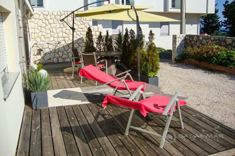U suterenu se nalazi kotlovnica koja grije i hladi cijelu kuću na morsku vodu, praonica rublja i apartman za dvije osobe sa sunčanom terasom i parkirnim mjestom.