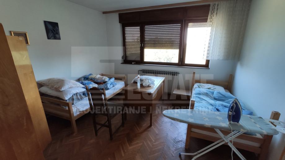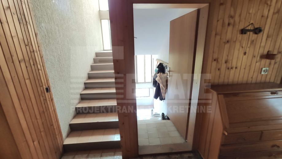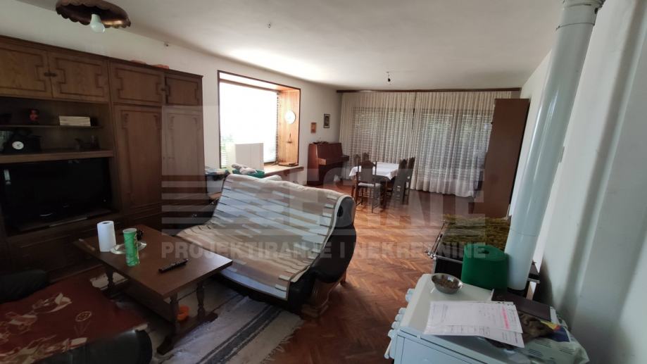 Stambeni dio sastoji se od velike dnevne sobe s blagovaonicom, veće izdvojene kuhinje, ostave, kupaonice i dvije terase u prizemlju, te 3 komforne spavaće sobe na prvom katu s kupaonicom, balkonom i lođom na prvom katu. Stambena površina prizemlja i kata iznosi 151 m2. U podrumu koji u građevinski dobrom stanju (suh, betoniran) nalaze se 3 spremišta te izlaz na dvorište. Prema potkrovlju vodi betonirano stubište te je isto pripremljeno za prenamjenu u stambeni prostor - dovedene sve instalacije, izvedena lođa i dio prozora itd.