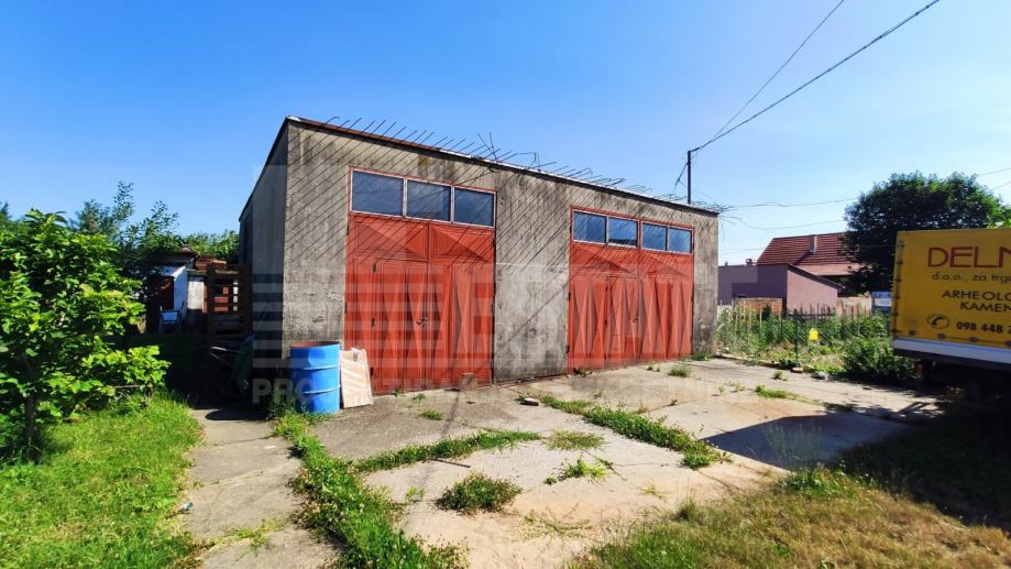 Na česticu se pristupa većim kolnim prilazom, a u dvorišnom dijelu se nalazi pomoćni objekt od gotovo 100 m2 koji se koristio kao garaža i radionica. U istu se ulazi dvama visokim garažnim vratima, pa je moguće parkirati i teretna vozila i slično. Moguće koristiti kao automehaničarska ili druga radionica, poslovni prostor proizvodnog tipa itd.