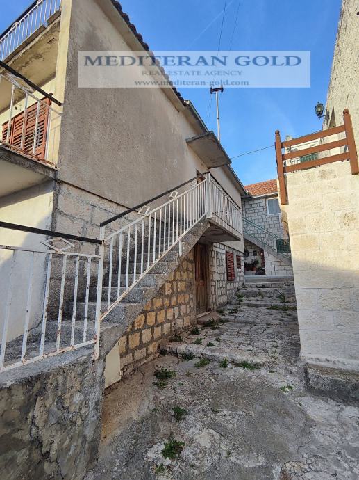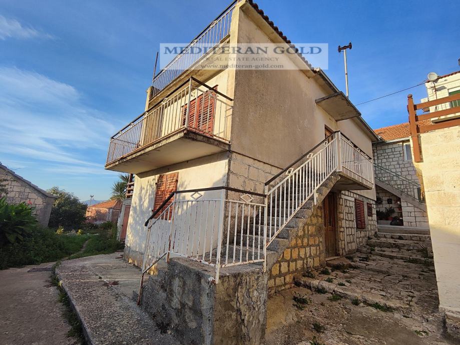 Trogir, Čiovo, Okrug Donji, na prodaju kamena kuća koja nudi neograničene mogućnosti preuređenja u vikendicu, obiteljsku kuću ili kao turistički objekt. Kuća ima 120m2 stambene površine, na dvije etaže, balkon i terasa sa pogledom. U prizemlju je hodnik, kuhinja s dnevnim dijelom, wc s kupaonicom i soba na jugu, Na prvom katu; predulaz, mali wc, dvije sobe i balkon po cijeloj duzini. S tog kata drvene stepenice vode u potkrovlje i terasa. Sve je za kompletno uređenje. Od mora udaljeno 350m2, južne orijentacije. Ispred kuće je javni parking, odmah je dostupno. Idealno za obiteljski život ili kao investicija. Agencija naplaćuje proviziju.