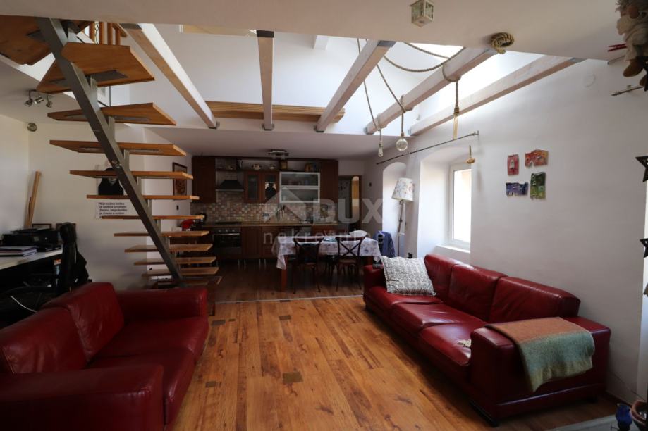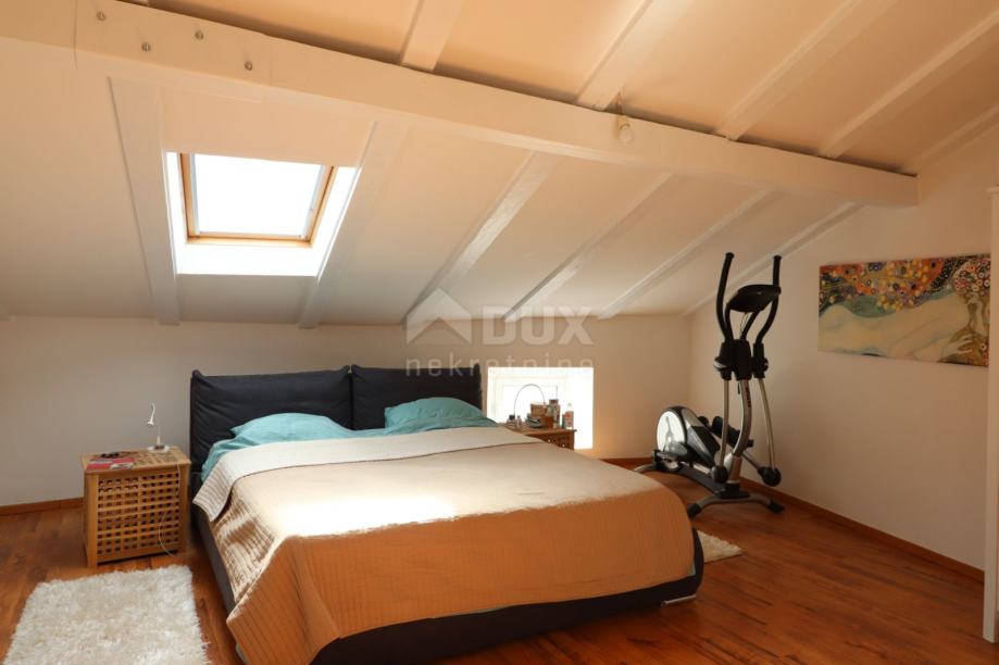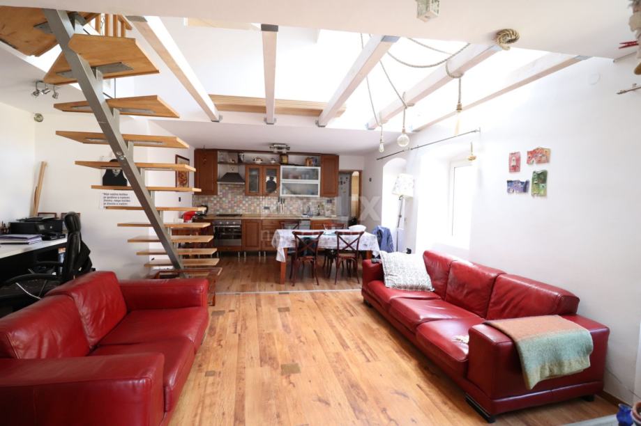 Stan se sastoji od dnevnog boravak, kuhinje, blagovaonice, smočnice, toaleta s praonicom rublja, terase i spremišta, dok se spavaće sobe s kupaonicom nalaze u potkrovlju.
