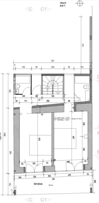 * Dvije spavaće sobe (16,5 m² i 15,5 m²)