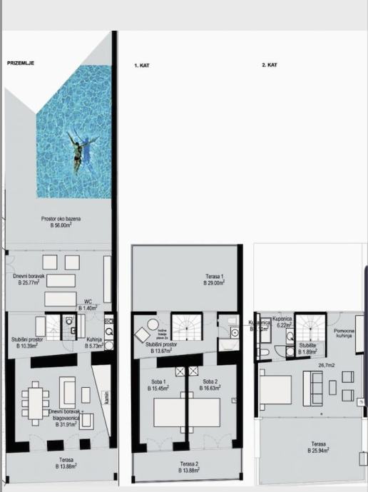 #### **Prizemlje (77 m² + 49 m² terasa):**