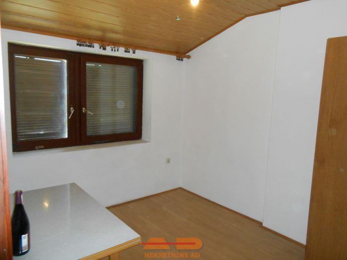 Prizemlje: hodnik, kupaona sa wc-om, ostava, boravak sa kuhinjom i blagovaonom, te izlaz na terasu i dvorište.