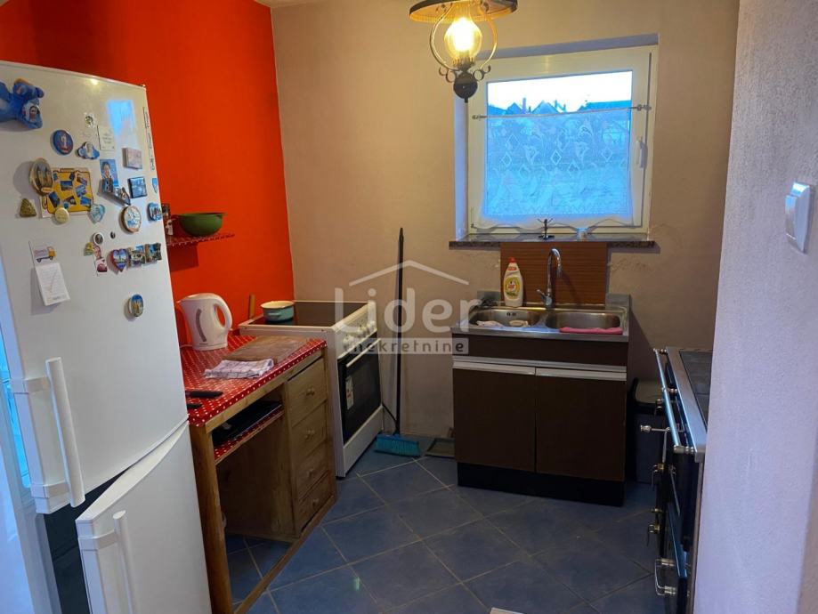 Iz prizemlja u kojem se nalazi kuhinja sa blagovaonicom, dnevni boravak i kupaona izlazi se u dvorište, na katu su tri spavaće sobe, predviđeni prostor za wc i ulaz u potkrovlje. Kuća je kompletno renovirana - betonske ploče, podne izolacije, parketi i panel parketi, dupli zidovi , termo žbuka na vanjskim bočnim zidovima, novo krovište sa aluminijskim pokrovom, nova pvc stolarija, nova struja, voda, odvod spojen na gradski, etažno centralno grijanje na drva.