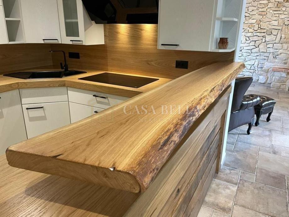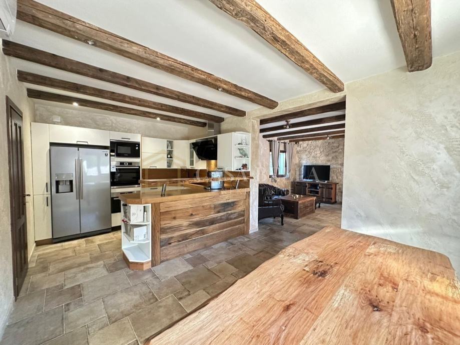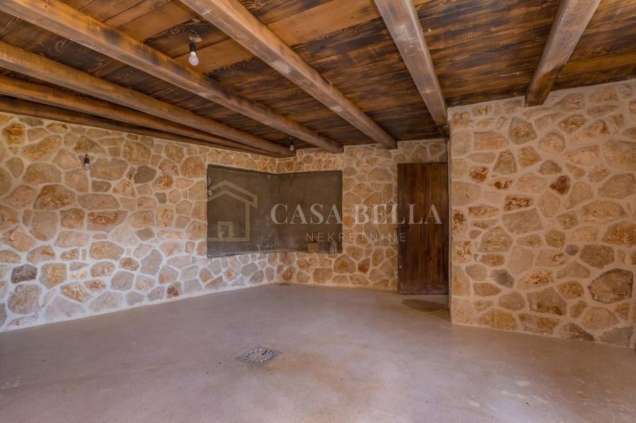 U prizemlju je veliki dnevni prostor (kuhinja, blagovaonica, dnevni boravak) te jedna spavaća soba s kupaonicom. Na katu su još dvije sobe s en suite kupaonicama. Vila ima i pomoćni objekt od pedesetak kvadrata koji može poslužiti kao gospodarska zgrada ili ga novi vlasnik može rabiti po svojim potrebama.