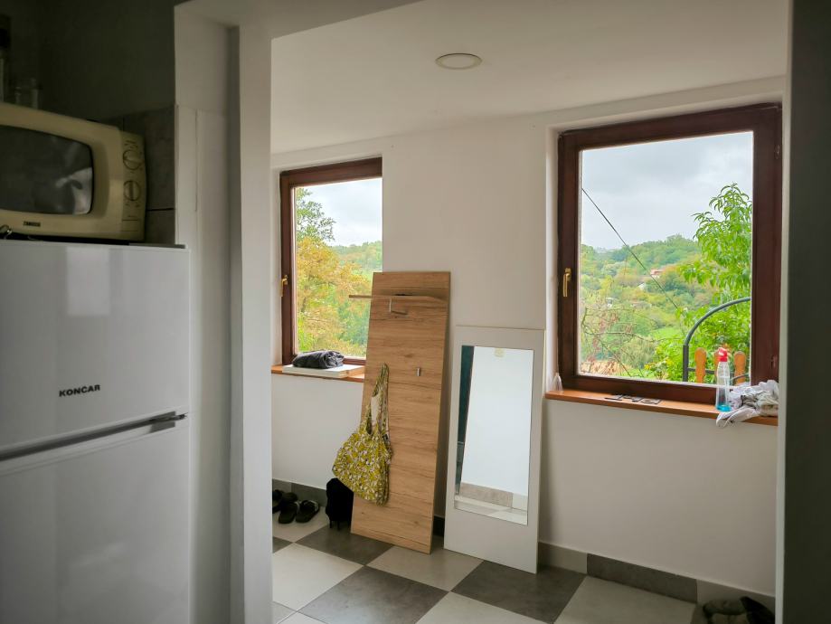 Donji stan (cca 50 m²): Sadrži sobu, kuhinju, hodnik i kupaonicu. Idealan za goste, članove obitelji ili kao izvor dodatnog prihoda kroz najam.