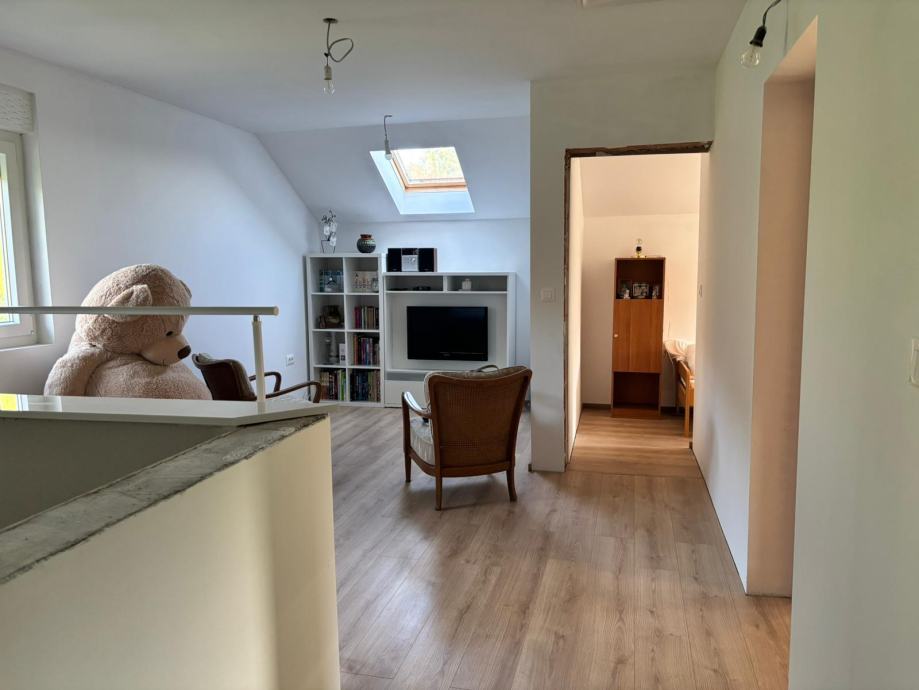 U prekrasnom, pitomom mjestu Zagrebačke županije, Drenovi Donjoj, k.o. Blaškovec, 4.5 km od Zagreba, prodajemo kuću bruto površine 167.48 m2 koja se prostire na tri etaže, na parceli površine 788 m2. Na prvoj etaži je garaža s pomoćnim prostorom 54.09 m2 povezano s unutarnjim stepenicama kuće. Osim garaže vrlo praktično i za manji obrt. Na prvom katu veličine 57.89 m2 je kuhinja, dnevni boravak i kupaona povezano hodnikom i stepenicama. Na drugom katu veličine 55.50 m2 su dvije spavaće sobe i otvoreni prostor za dnevni boravak. Renovacija drugog kata s izolacijom, laminat parketom i instalacije za manju kuhinju i kupaonu na drugom katu su provedene 2024. g. Kupaona i kuhinja na drugom katu nisu završene obzirom da je kuća korištena kao obiteljska vikendica. Kuća ima sve priključke i spojena je na gradski plin i vodovod. Iza kuće nalazi se manji vinograd, a ispred mali voćnjak. Stolarija je kvalitetna PVC. Okružena zelenilom, svim sadržajima potrebnim za život, vrlo ugodnim i mirnim susjedstvom, spremna za život. Vlasništvo uredno, 1/1. Bez tereta. Agencije isključene. Namještaj i oprema u cijeni kuće. Kuća je odmah na raspolaganju.