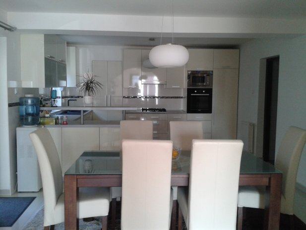 U prizemlju se nalazi dnevni boravak, kuhinja, soba, veseraj i kupaonica s tusem te ostava i hodnik. Na katu tri sobe i kupaonica s velikim predsobljem. Veliki podrum, garaza i tri terase te dva balkona. Okucnica 1100 m2.