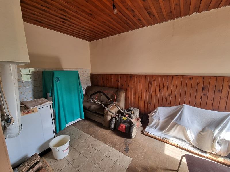 Kuća se sastoji od sobe,kuhinje,kupaonice+wc-a, garaže i balkona.