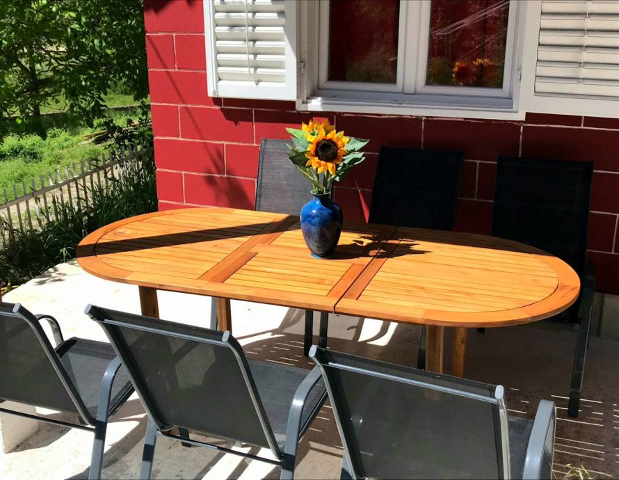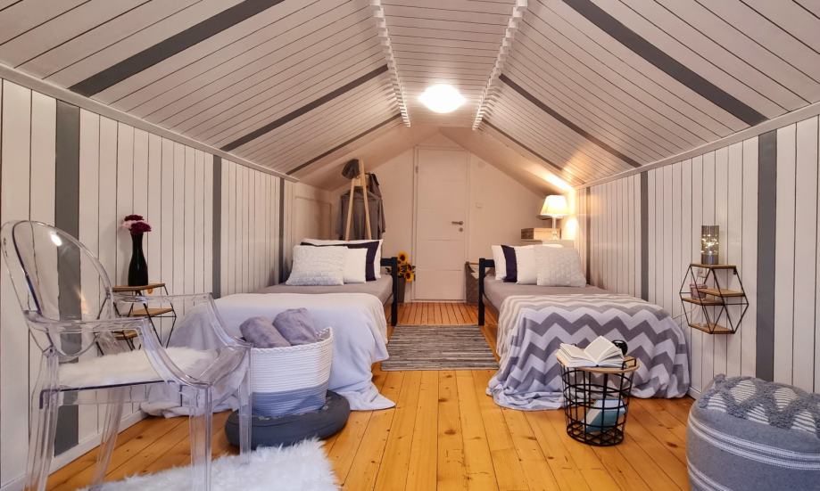 It has 4 bedrooms (or alternatively 3 bedrooms with working space, or any other combination that suits our guests in the best way), 2 bathrooms, living room, fully equipped kitchen, grill house, veranda, parking for several cars, children playground...