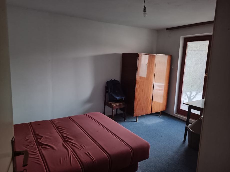 Sastoji se od tri spavace sobe (jedna neuredjena), kuhinje, dnevnog boravka, kupaonice, ostave, garaze te tavana.